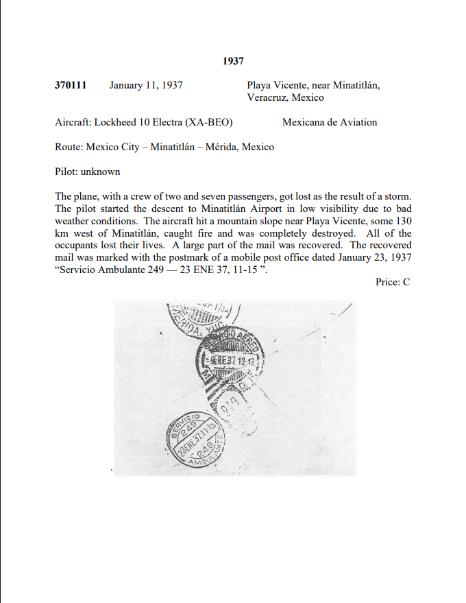 Air Crash Mail of the World Part 3 – 1937 -1949