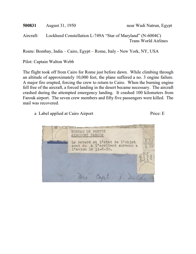Air Crash Mail of the World Part 4 – 1950 – 2016