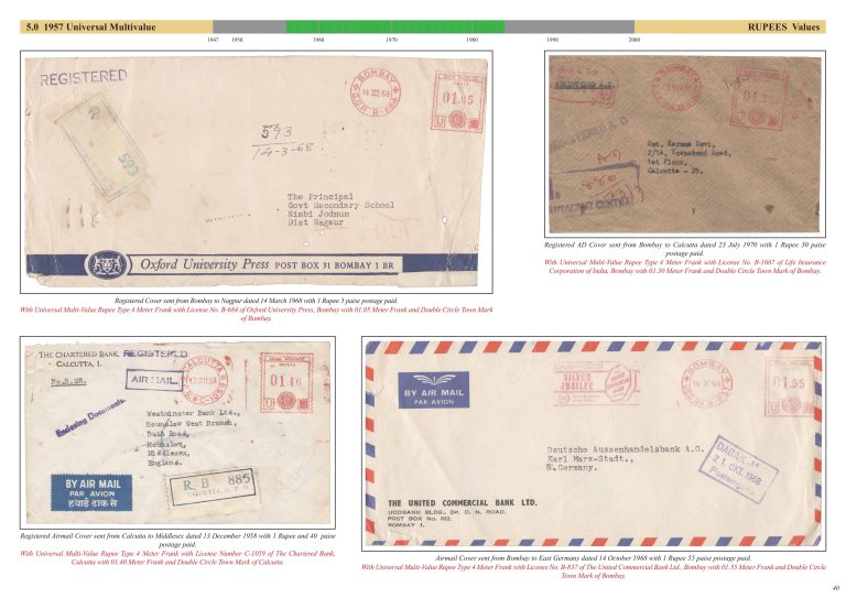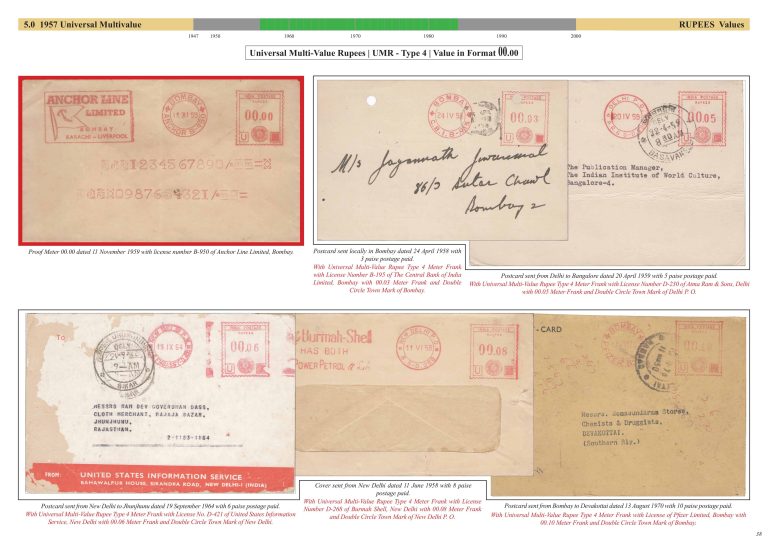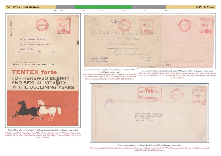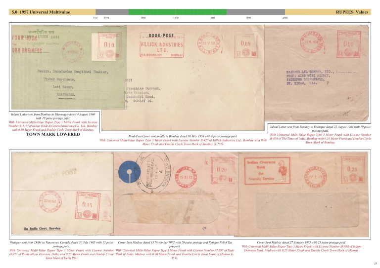 Exhibit Name: First Decade of Post Independence Meter Stamps of India (1947 - 1957) Exhibitor's name: Sushil Mehra Frame#5 (Page 33-40) Double Size Sheet Frame#1 Frame#2 Frame#3 Frame#4 Frame#5 Back to Postal History