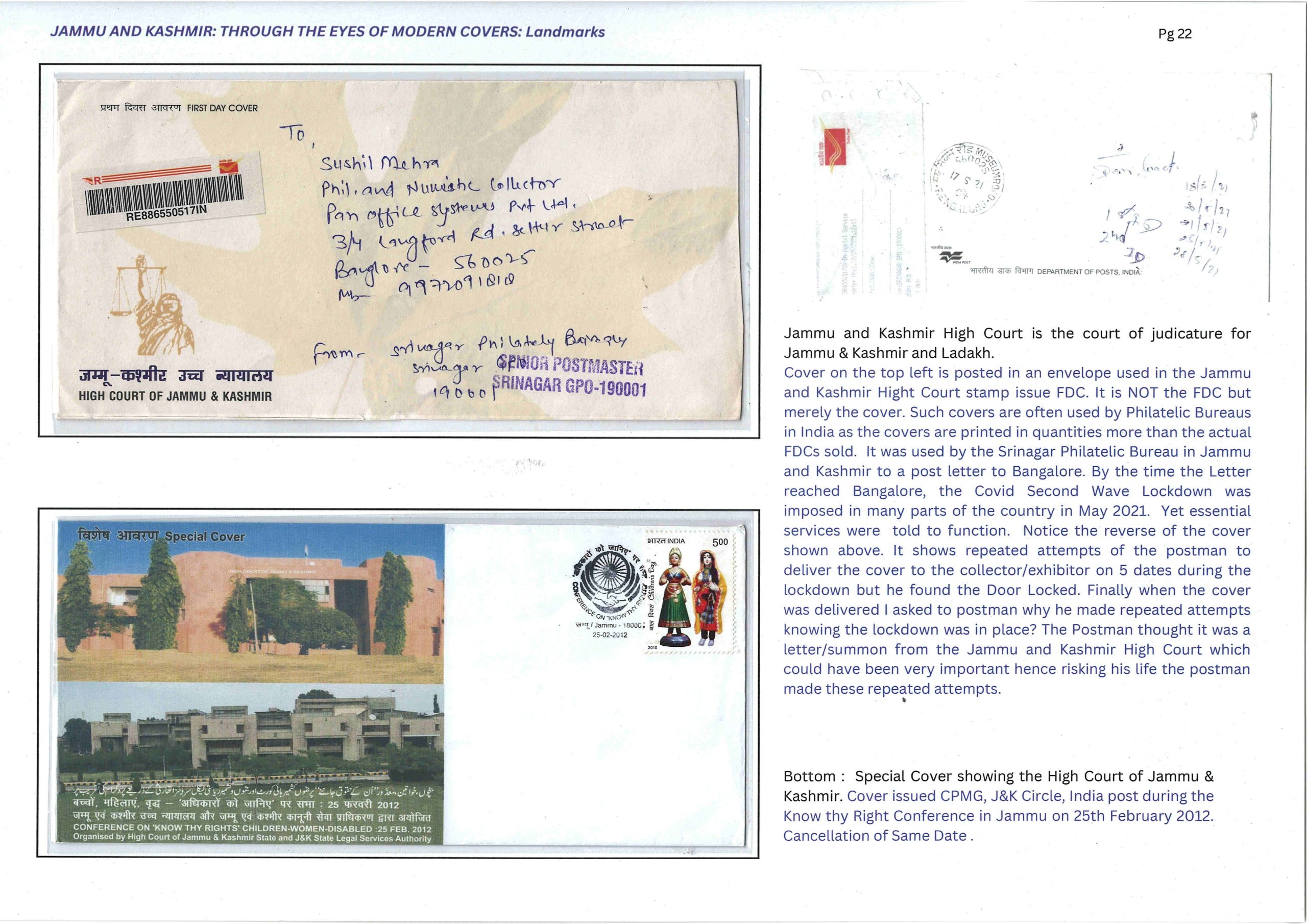 Exhibit Name:JAMMU AND KASHMIR: THROUGH THE EYES OF MODERN COVERS Exhibitor's name: Gauresh Mehra Frame#3 (Page 17-24) Double Size Sheet Frame#1 Frame#2 Frame#3 Frame#4 Frame#5