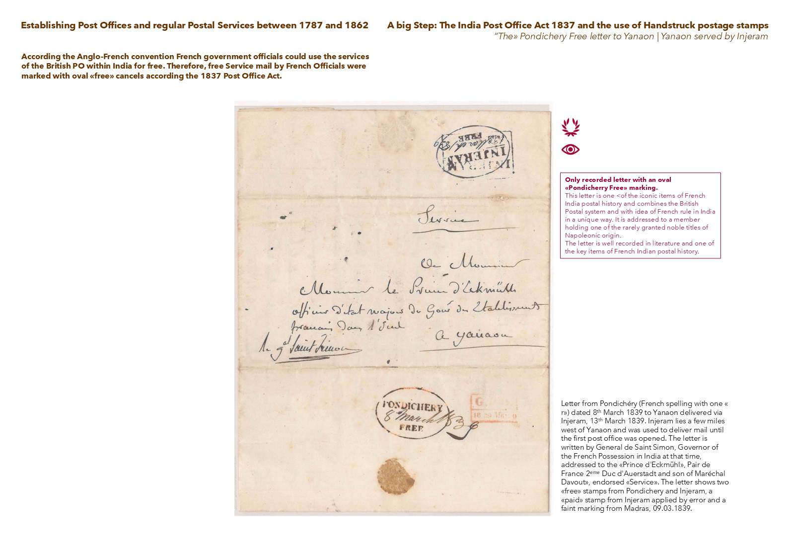Exhibit Name: Lettres de Pondichery - A History of Postal Services in the French Settlements in India Exhibitor's Name: Eric Scherer Frame#3 (Page 17-24) Double Pages Frame#1 Frame#2 Frame#3 Frame#4 Frame#5 Frame#6 Frame#7 Frame#8