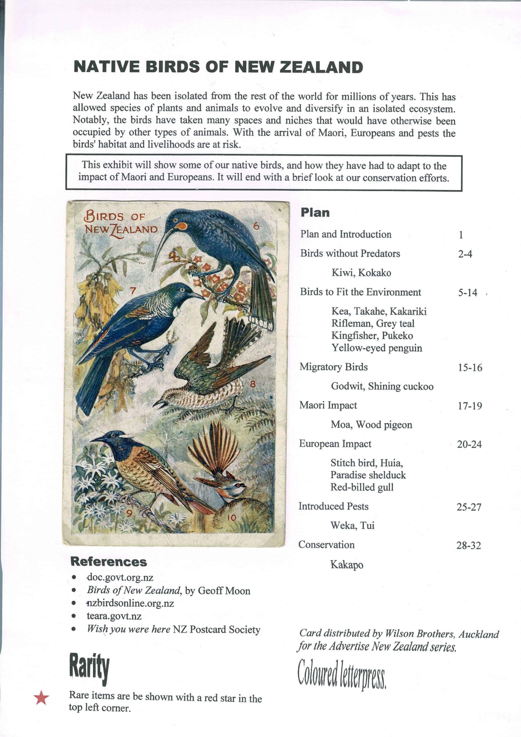 EXHIBIT NUMBER 24 Exhibit Name: Native Birds of New Zealand Exhibitor's Name: Hadley Muller Frame#1 (Page 1-16) Frame#1 Frame#2