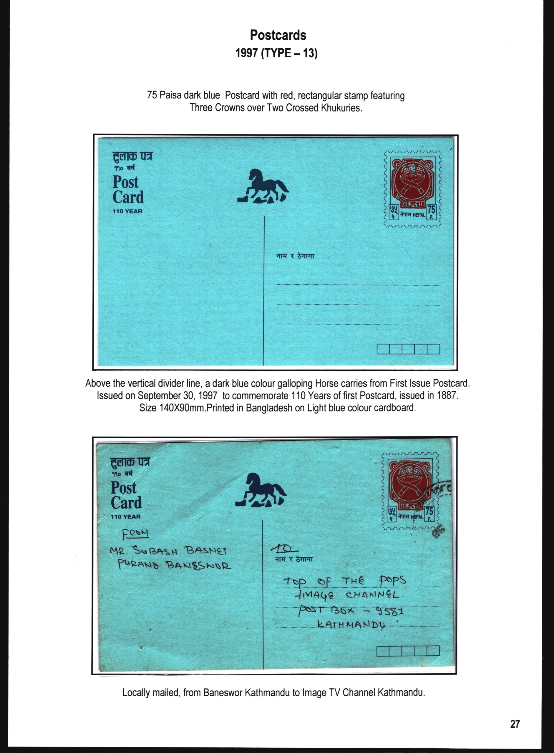 Exhibit Name: NEPAL POSTAL STATIONERY 1887 - 2007