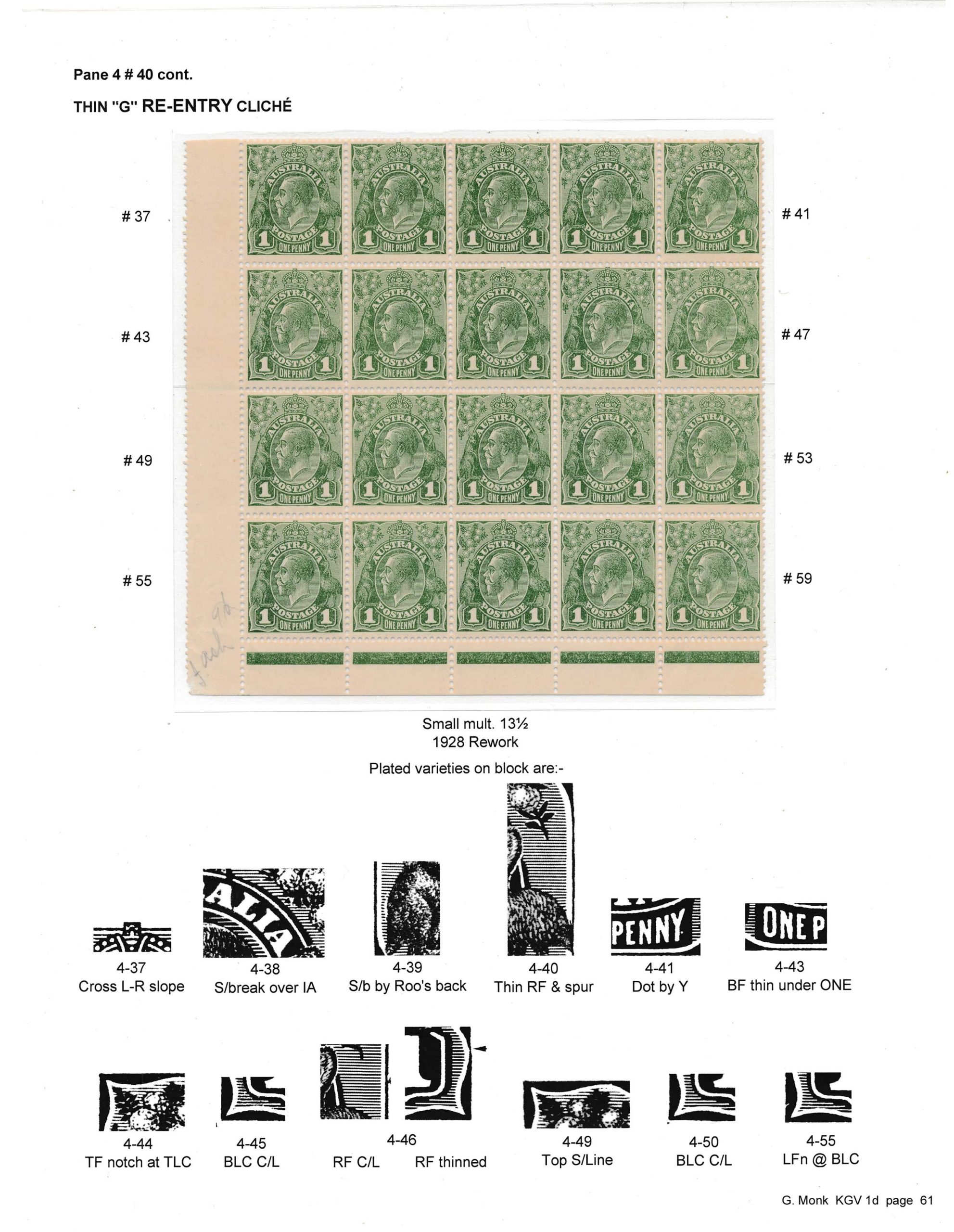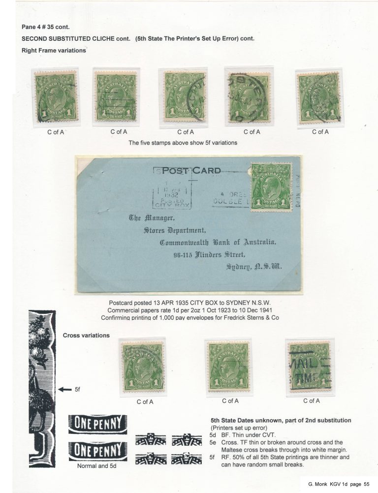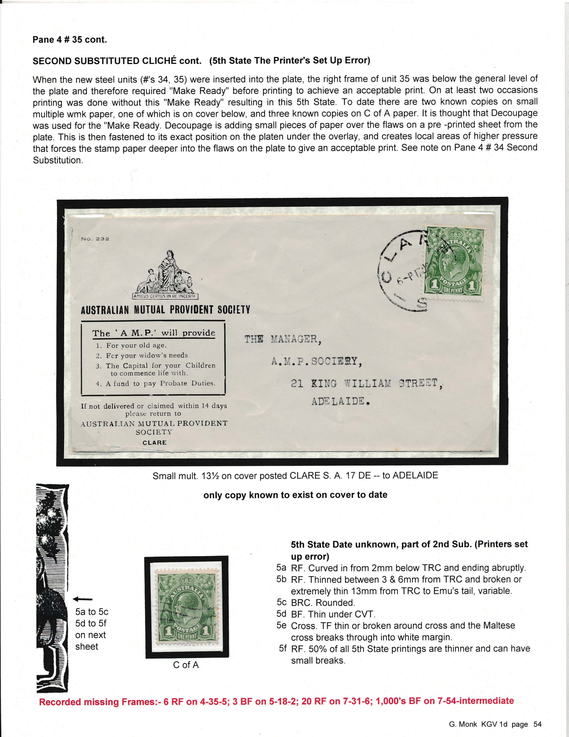 Exhibit Name: Surface printed varieties of the surface printed KGV 1d Exhibitor's Name: Gordon Monk Frame#4 (Page 49-64) Frame#1 Frame#2 Frame#3 Frame#4 Frame#5 Frame#6 Frame#7 Frame#8