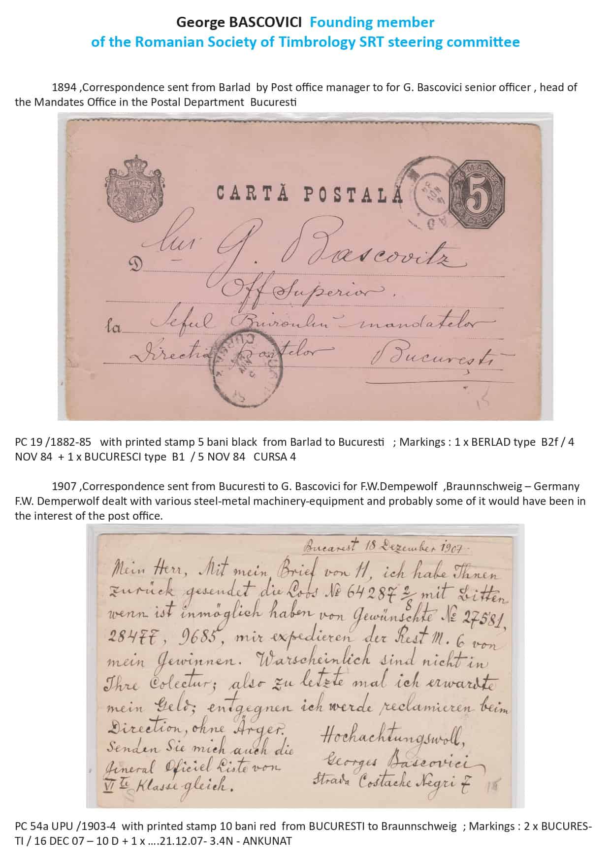 Exhibit Name: The BEGINNINGS OF THE PHILATELIC MOVEMENT FROM ROMANIA Exhibitor's Name: Alexandra Gherasim Frame#3 (Page 33-48) Frame#1 Frame#2 Frame#3 Back to Open Class