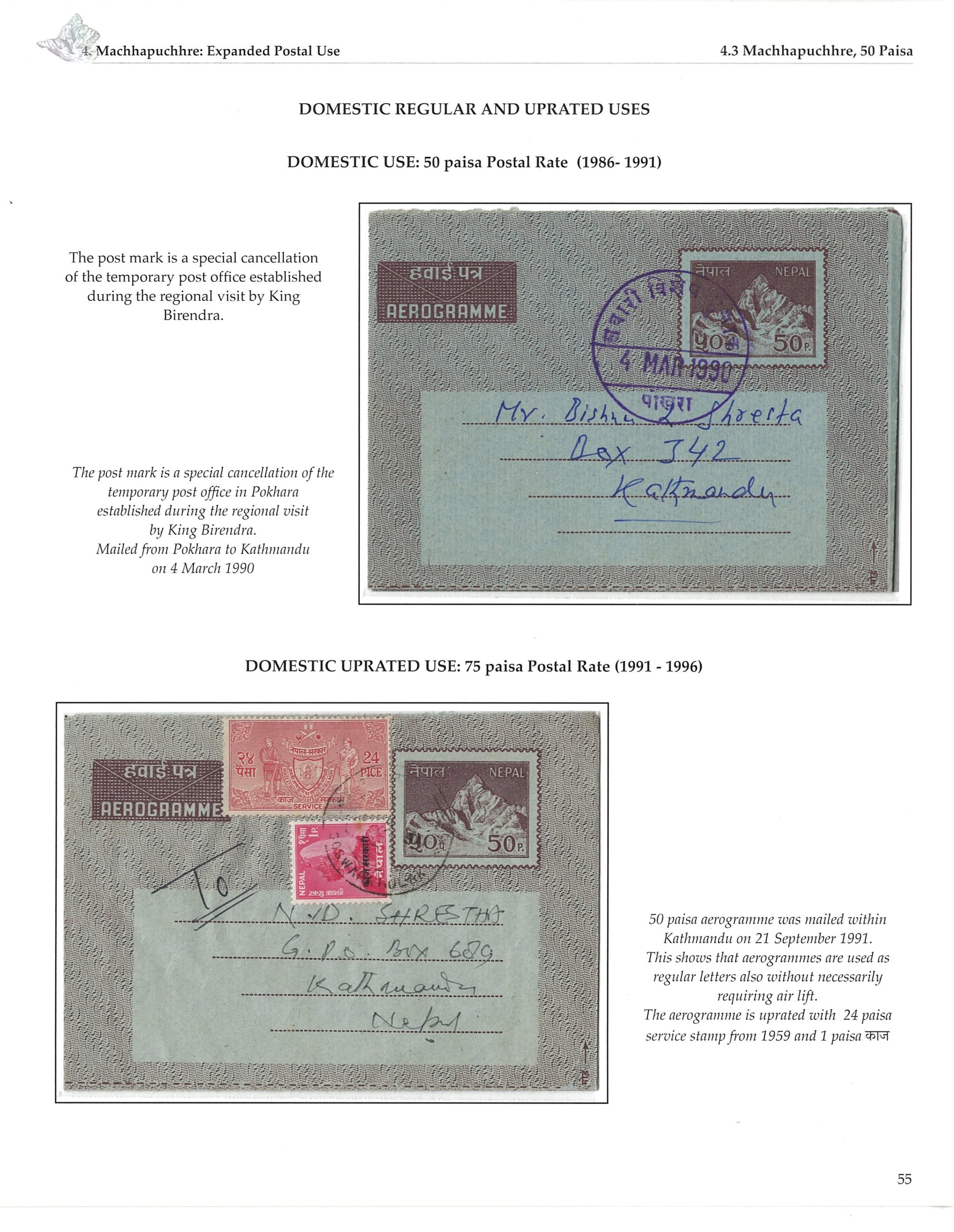 Exhibit Name: THE DESIGN AND EVOLUTION OF AEROGRAMMES (1959 — 1994) Exhibitor's name: Binod Krishna Shrestha Frame#4 (Page 49-64) Frame#1 Frame#2 Frame#3 Frame#4 Frame#5